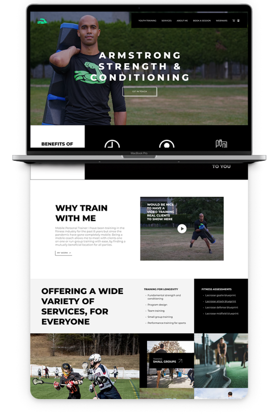 Curtis started off his business doing personal training for adults, but now also specializes in Youth Training for Lacrosse players. He was very frustrated with his current website on Wix due to the inability to edit it easily. We also wanted to find a way to showcase all of the type of services he offers without making it too confusing. And to top it all off he wanted to introduce a new revenue stream with online materials for clients.