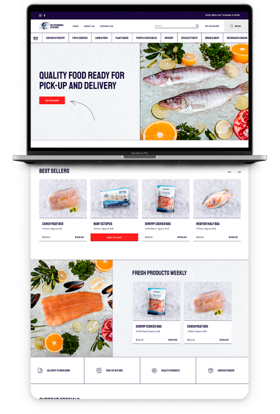 ER Fisheries is a Bermuda based online grocery store for frozen seafood & meat operating on Woocommerce.