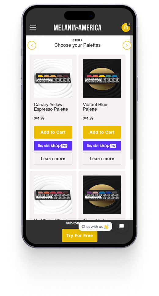 The world of eCommerce is BEYOND saturated. It's time to come up with creative ways for people to shop, such as we did here for Melanin in America for their product bundle wizard - custom made!